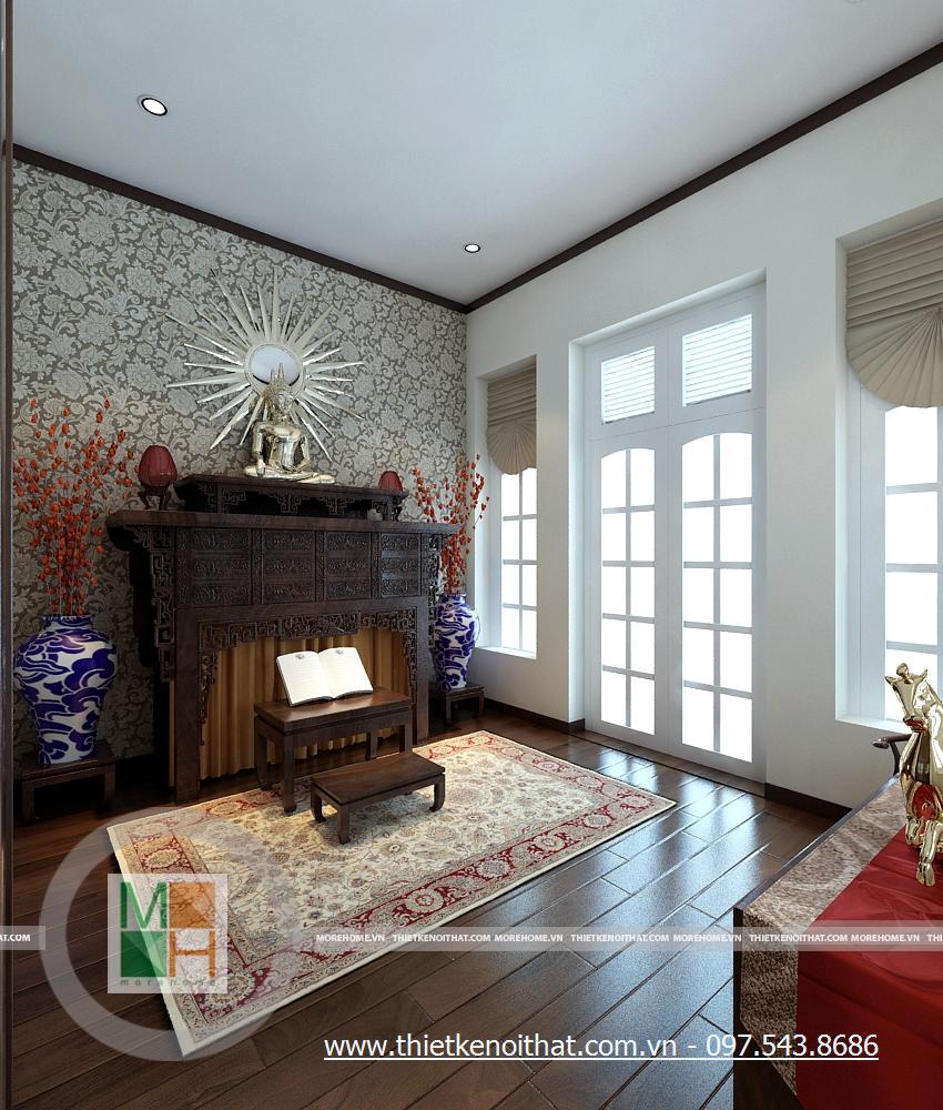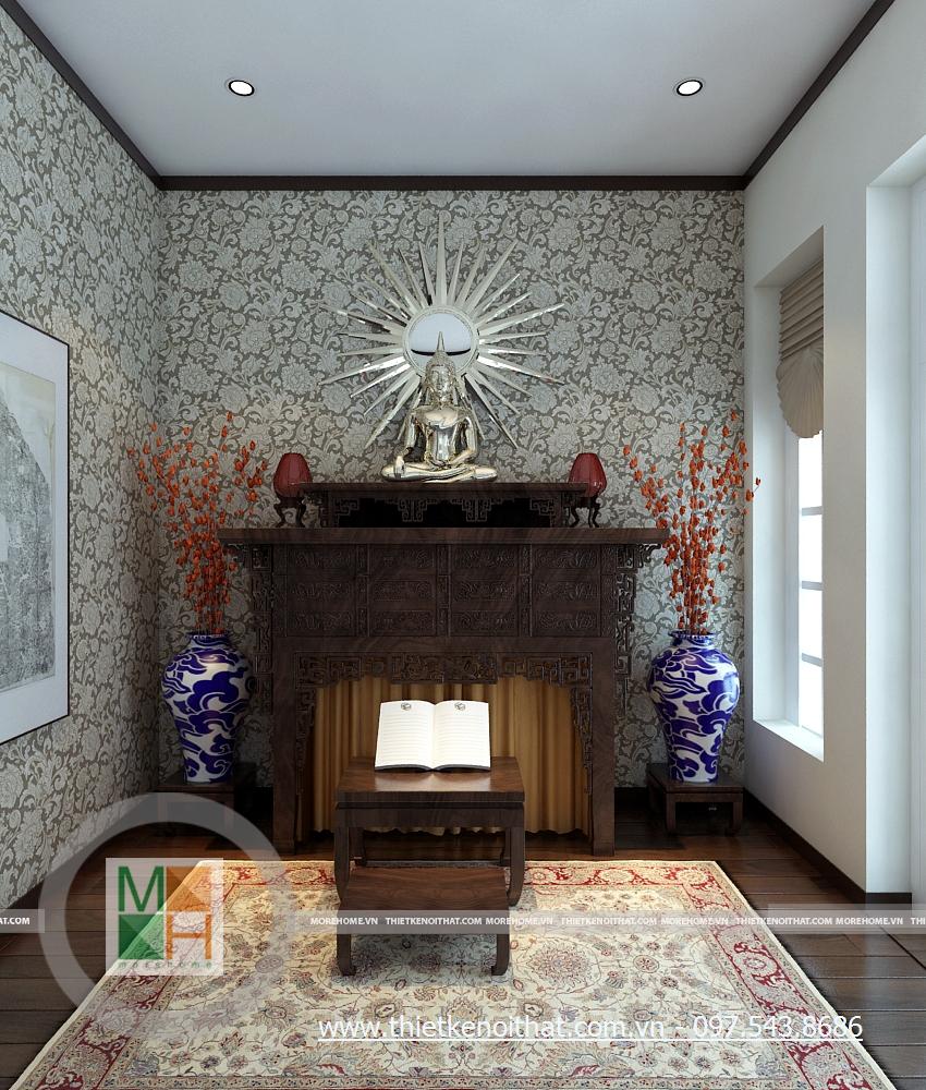 Phòng thờ Phật này được gia chủ đặt đóng theo yêu cầu, với những họa tiết và đường nét uốn lượn khiến không gian biệt thự và chung cư thêm sang trọng. Gia chủ tại tphcm (Sài Gòn) và Hà Nội rất ưa thích mẫu phòng thờ này.
