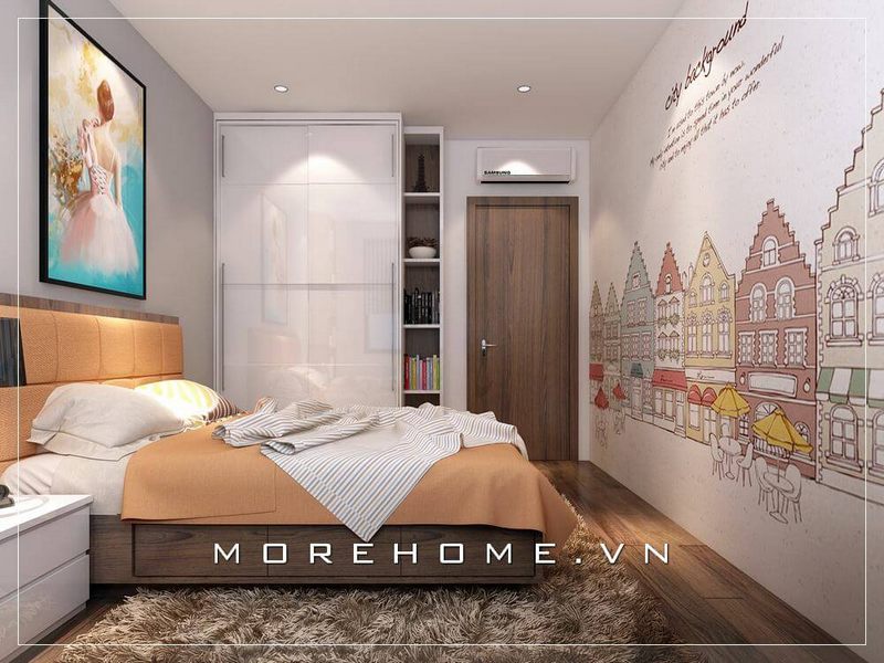 Thiết kế tủ quần áo hiện đại, bố trí âm tường phù hợp với không gian phòng ngủ chung cư nhỏ