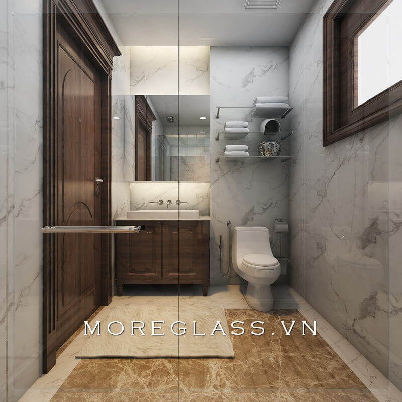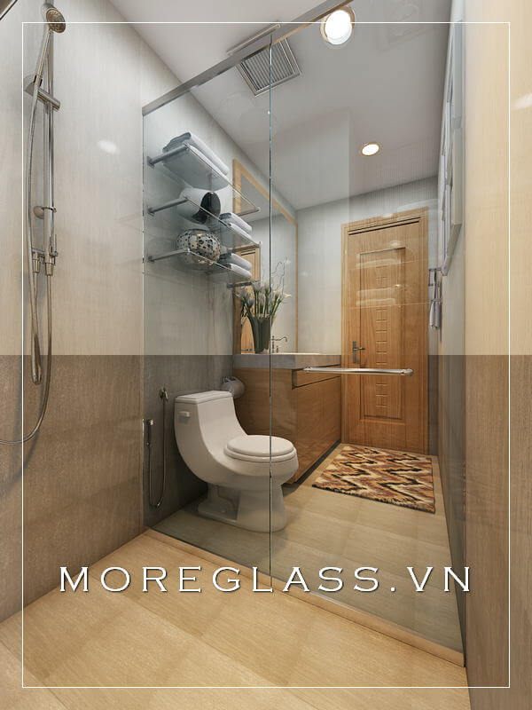Mẫu thiết kế phòng tắm của căn hộ nhỏ đẹp được sử dụng nội thất đơn giản và tiện lợi, tạo ra một cảm giác thoải mái và giải tỏa không gian.
