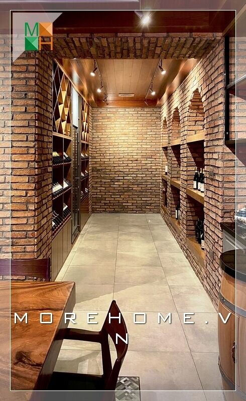 Gỗ tự nhiên là chất liệu chính để trang trí căn phòng rượu của căn hộ chung cư, biệt thự và nhà phố, với trần nhà đẹp và cao cấp.